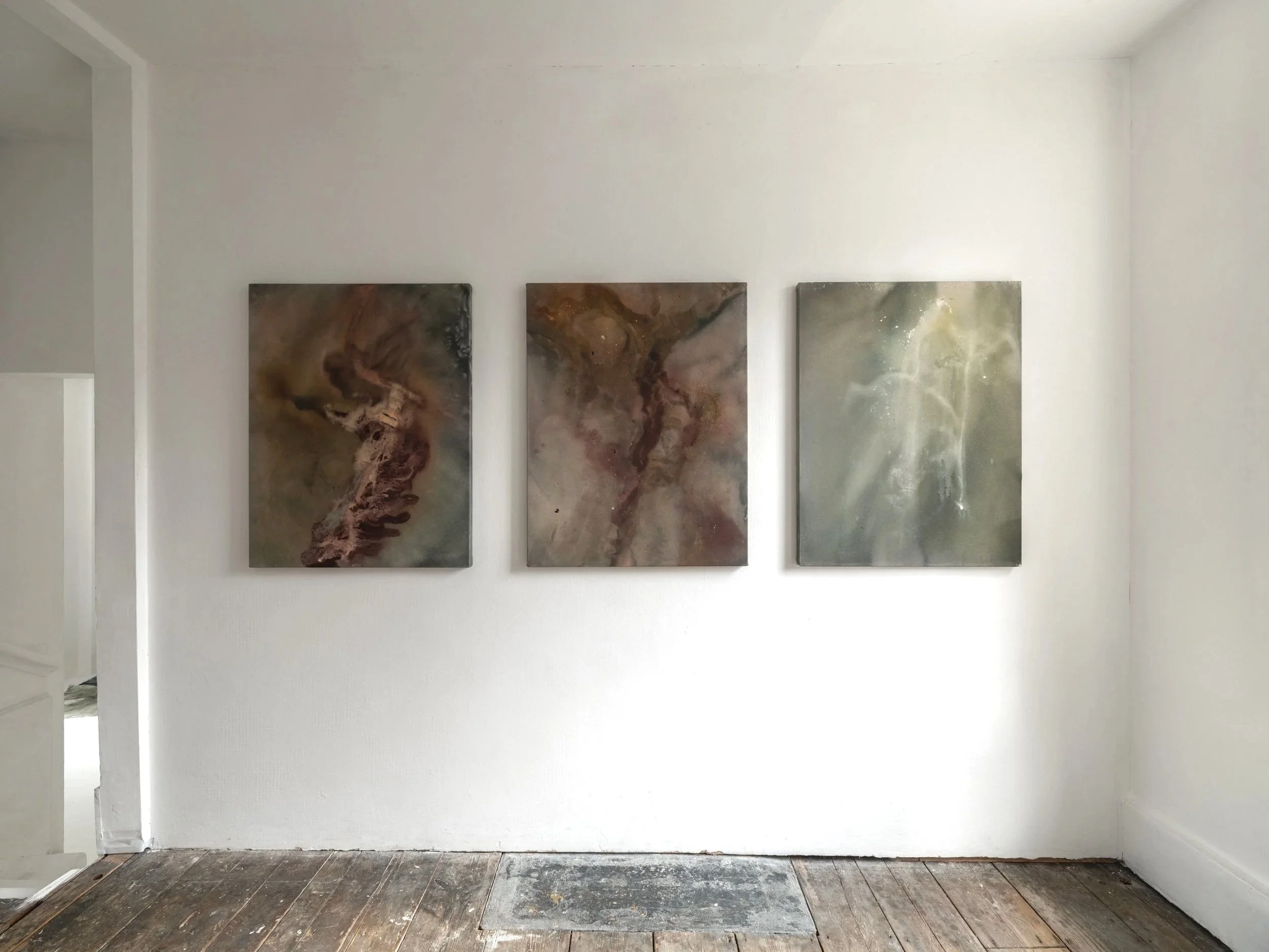 Acrylic, raw pigment, situational debris on canvas, 90x70cm each